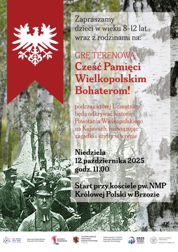 Uczestnicy będą odkrywać historię Powstania Wielkopolskiego na Kujawach, rozwiązując zagadki i szyfry w terenie.