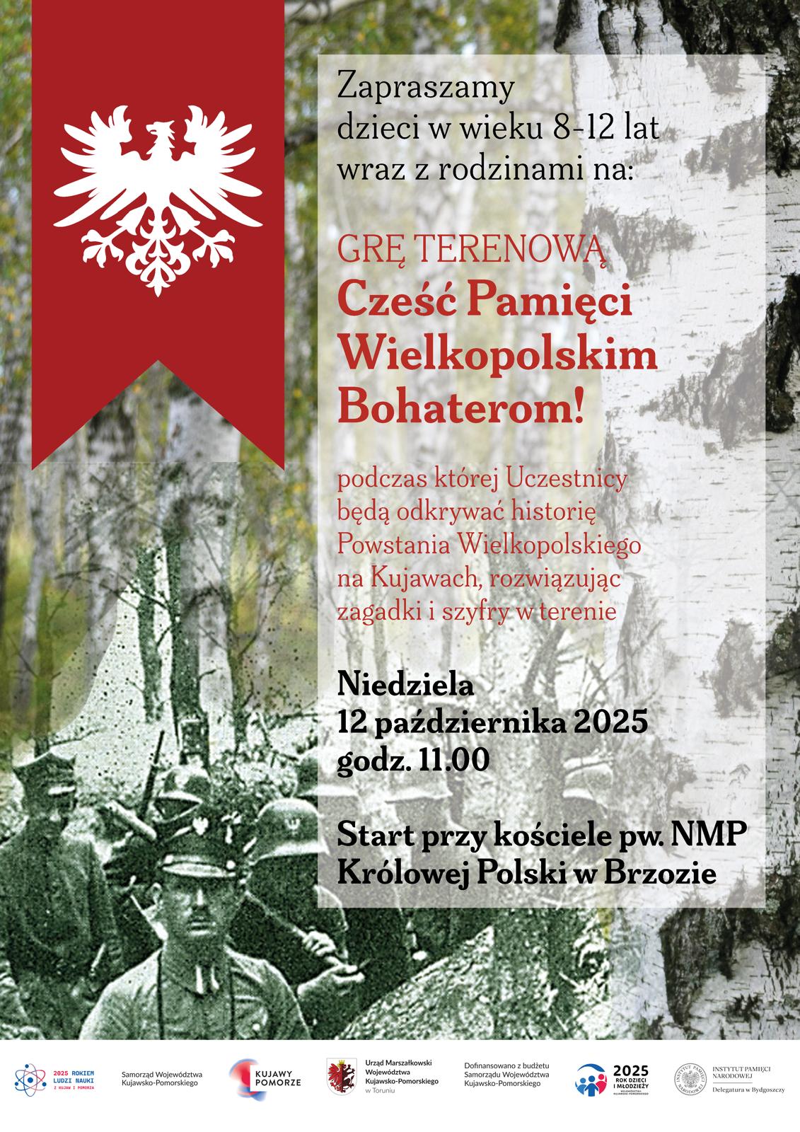 W imieniu Organizatorów już dziś zapraszamy wszystkie dzieci na Grę terenową „Cześć Pamięci Wielkopolskim Bohaterom!”.