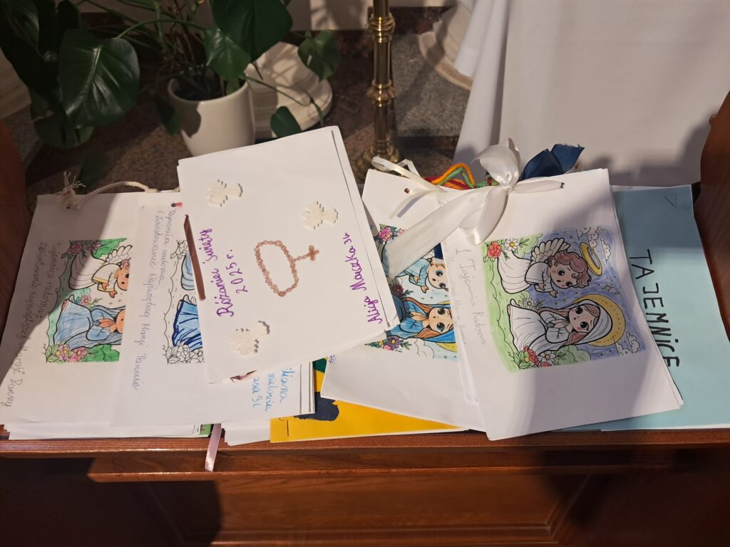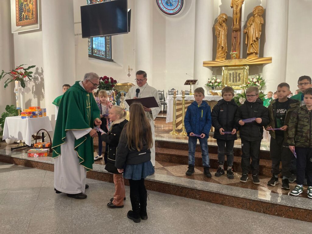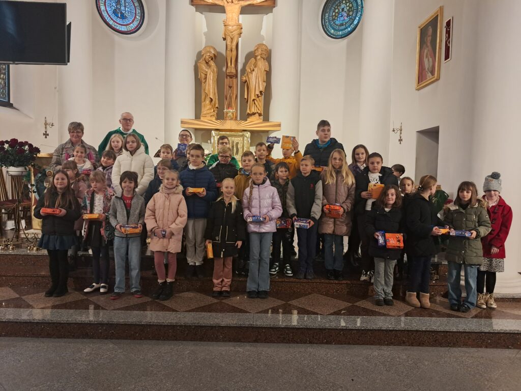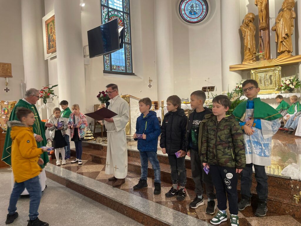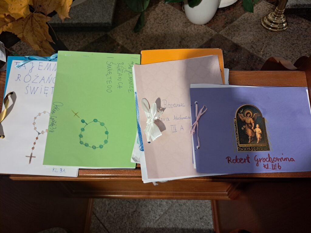 Na zdjęciach: Dzieci, które odebrały w niedzielę nagrody za wykonanie pięknych Różańców i regularne uczestniczenie w październiku w modlitwie różańcowej.