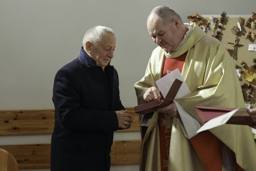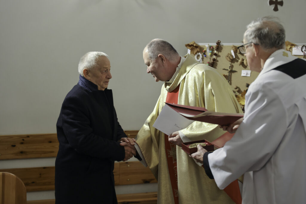 Na zdjęciu: Pan Wojciech Oskwarek odbiera medal pamiątkowy „Zasłużony dla Diecezji Bydgoskiej” podczas Mszy św. w Kościele w Brzozie/autor zdjęć: Bogusław Dudziak